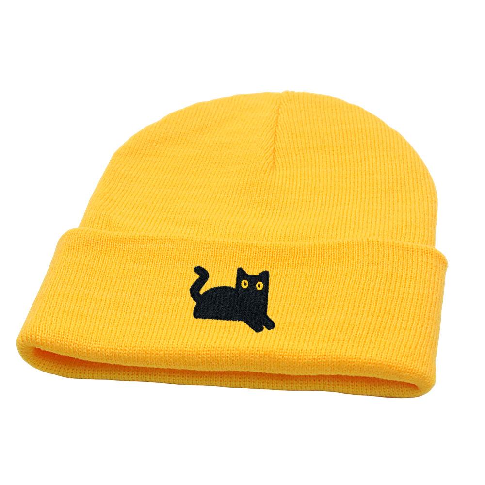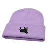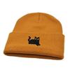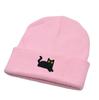 Autumn and winter warm knitted pullover hat for men and women, cute black cat pattern embroidered yarn beanie hat