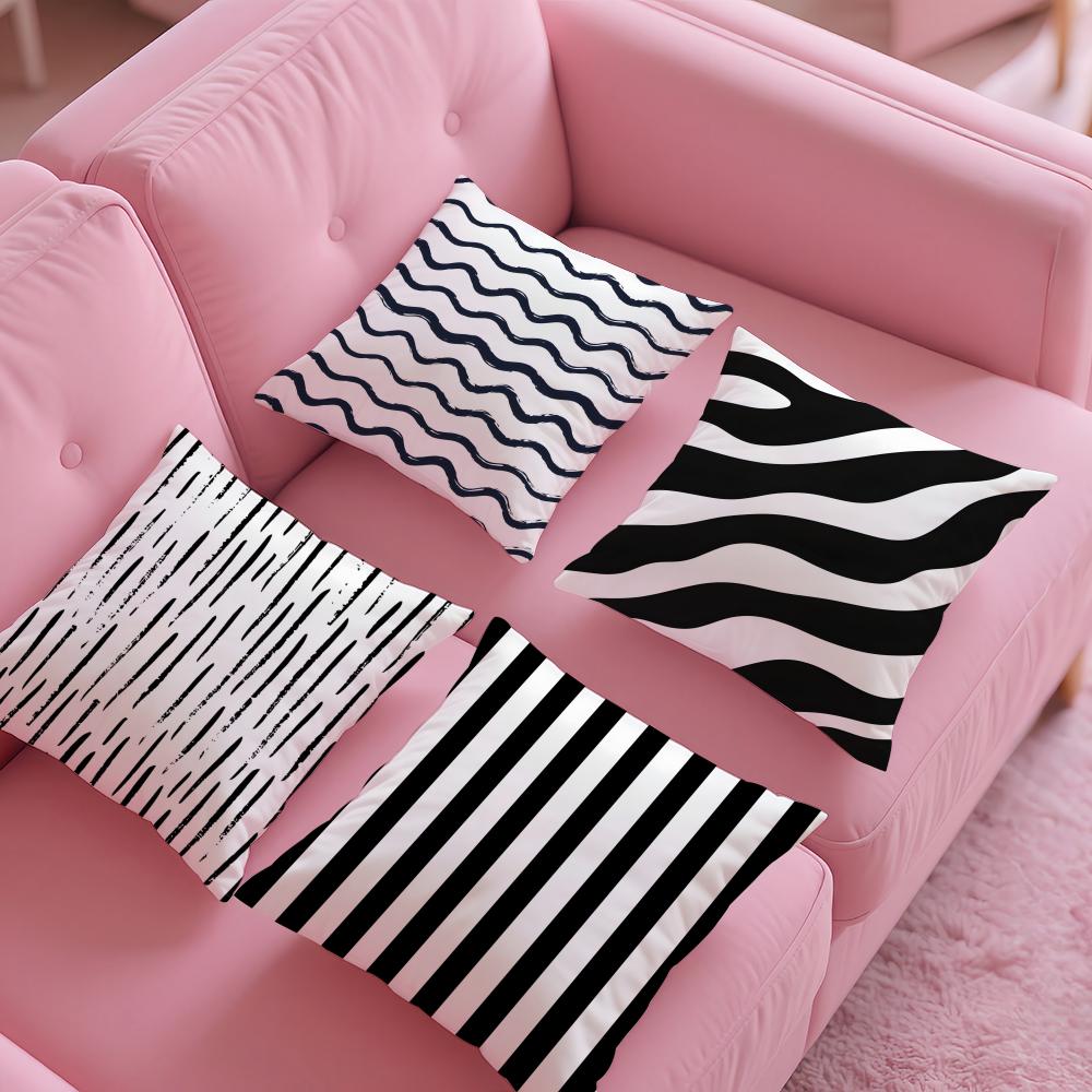 Black White Striped Geometric Rectangle Silky Short Plush with Invisible Zipper Dustproof Sofa Cushion Cover for Home Decor