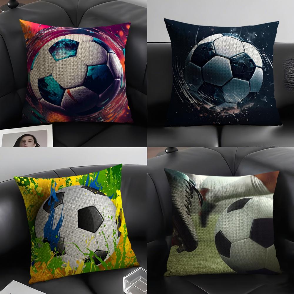 Football Sport Cushion Cover Natural Linen Organic Fabric DoubleSided Printing Sofa Home Decor Gift Pillow Case