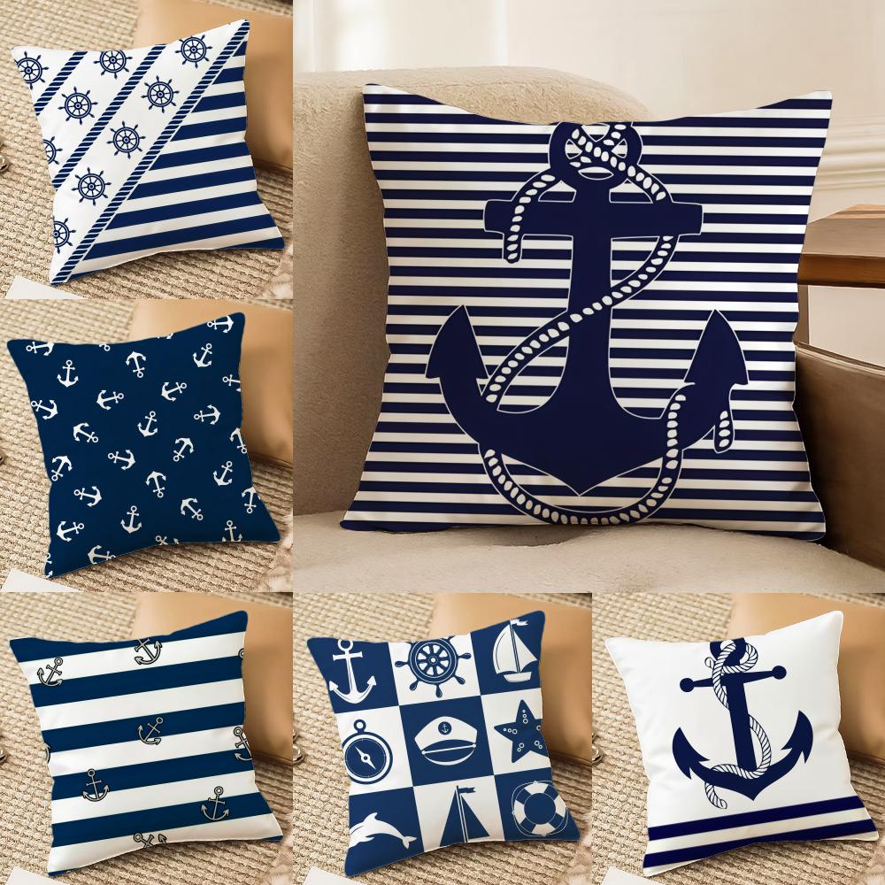 Classic Oocean sailor Cushion Cover Short plush Doublesided Print Square Throw Pillow Covers Sofa Home Cushion Decor