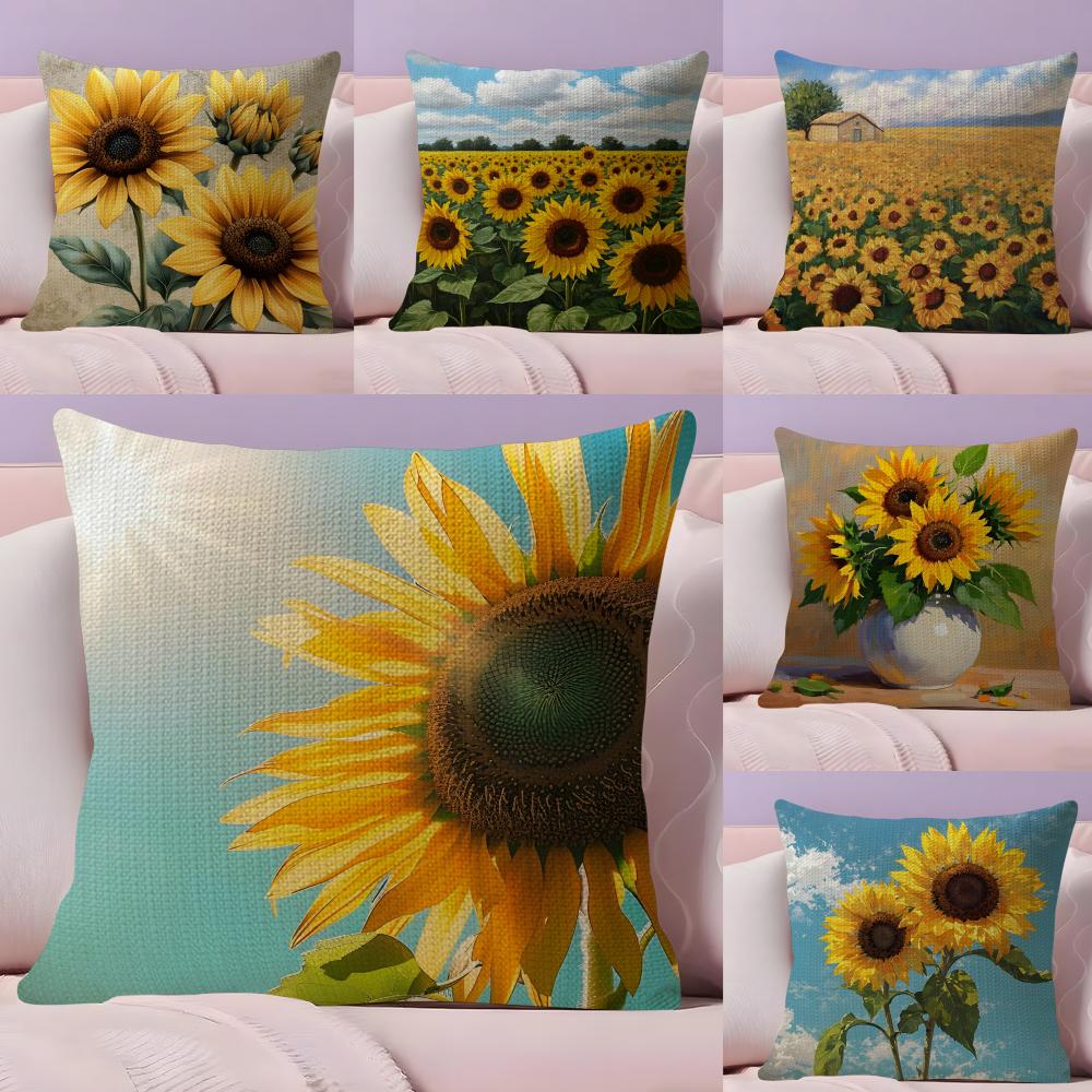 Sunflower Fashion Cushion Cover Natural Linen Pillow Case DoubleSided Print Decorative Sofa Pillowcase Home Decor Gift
