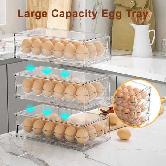 Featuring a large capacity with two smooth sliding drawers holding up to 36 eggs (18 per tier), this storage box keeps each egg securely in its dedicated curved groove for vertical storage.