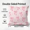 Pink Bow INS Cushion Cover Plush Fabric Soft DoubleSided Printed Sofa Warm Winter Home Child Gift Pillow Case