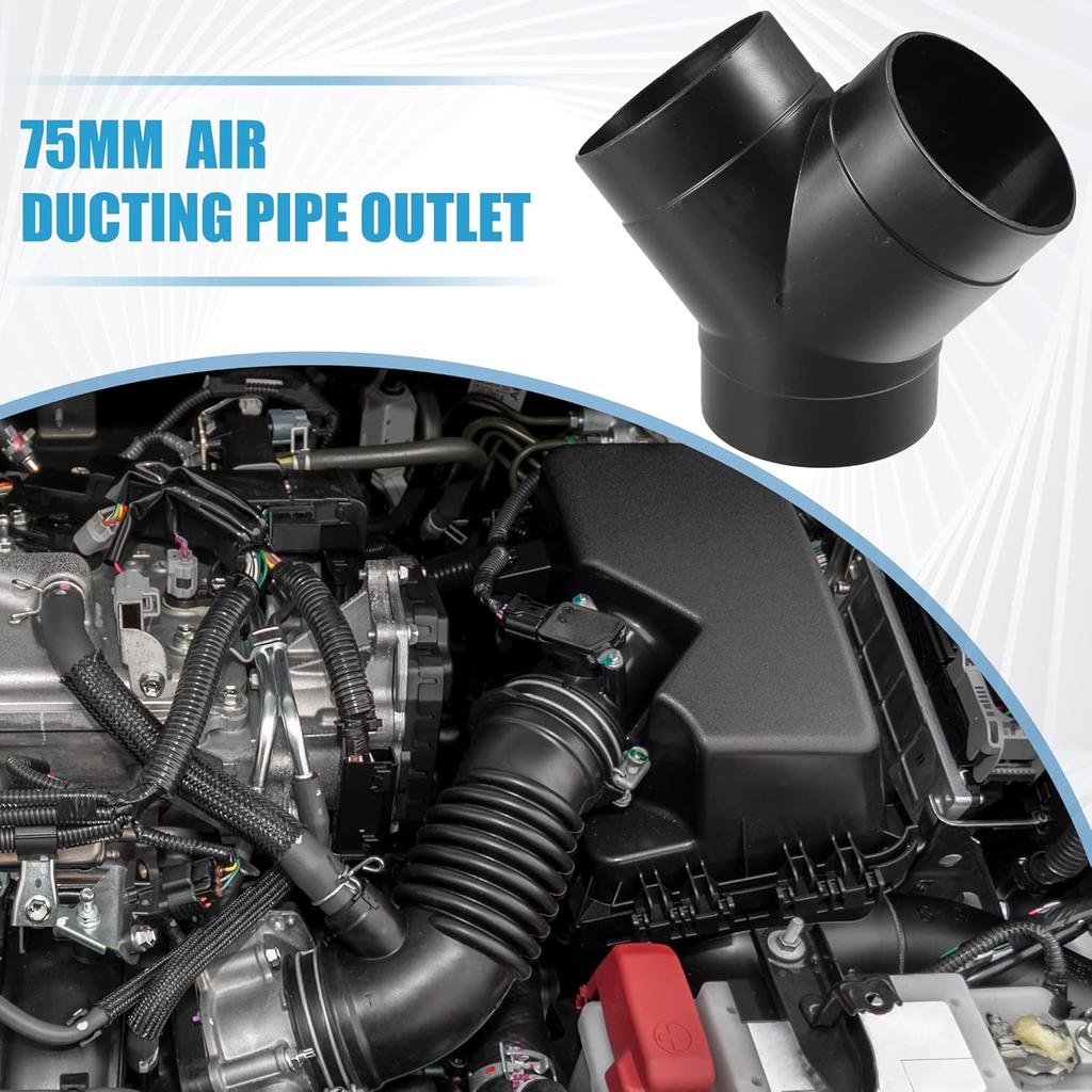 Y Piece Duct Air Ducting Connector Straight Air Heater Duct Joiner Connector Pipe 2.95'' 75mm OD Black (Set of 2)