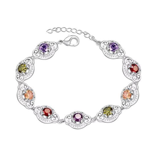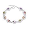 Żywe Wielobarwne Ozdoby: Ozdobiona ośmioma bogato kolorowymi sztucznymi kamieniami szlachetnymi, w tym odcieniami fioletu, czerwieni, pomarańczu i zieleni, ta bransoletka oferuje harmonijną mieszankę żywych barw.. Olśniewający blask każdego klejnotu podkreśla ogólną estetykę, dodając przyciągającego wzrok uroku każdej stylizacji.