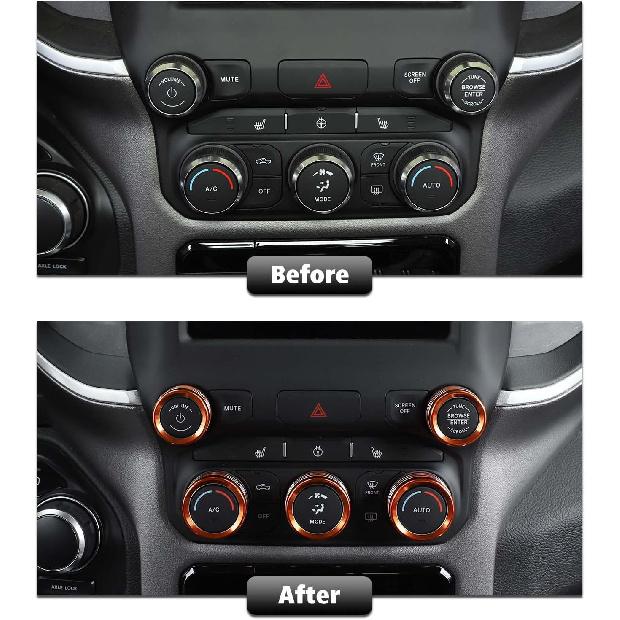 RT-TCZ Center Control AC Radio Switch Knob Cover Volume Tune Switch Knob Button Cover Trim Ring Aluminium Alloy Interior Accessories for Dodge RAM