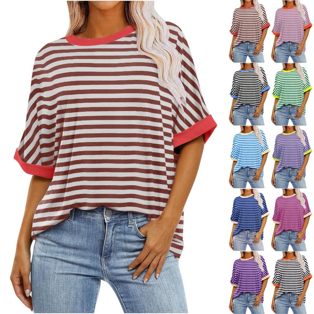 Women's Loose Oversize Print Round Neck, Shoulder Length Short Sleeved T-shirt Top