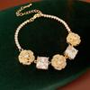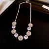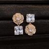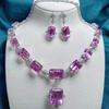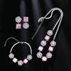 Flower Cluster Princess Pink Rose Small Sugar Cube Zircon Ring Earrings Necklace Set Light Luxury High-end Jewelry