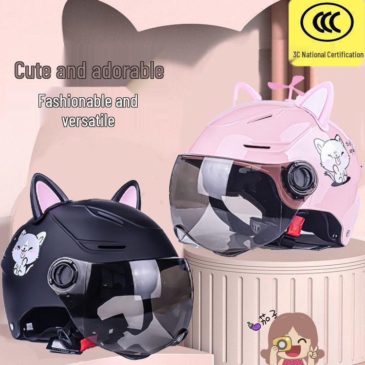 3C Certified Cat-Themed Lightweight Electric Bike Helmet - Summer Riding Sun Protection Safety Helmet