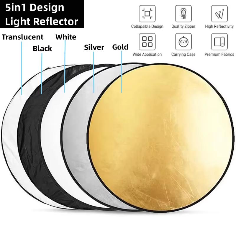 5 In 1 Round Portable Reflector, Multi Color Outdoor Collapsible Diffuser Photography Light Reflectors For Studio Photo 110CM