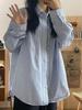 Retro Blue Striped Shirt Women's Spring and Autumn New Loose Casual Shirt Jacket