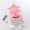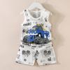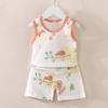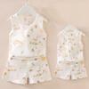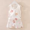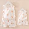 Koreańska wersja zestawu kamizelki dla dzieci Nowy chłopięcy i dziewczęcy dziecięcy kreskówkowy cienki zestaw bez rękawów kamizelki i szortów modny