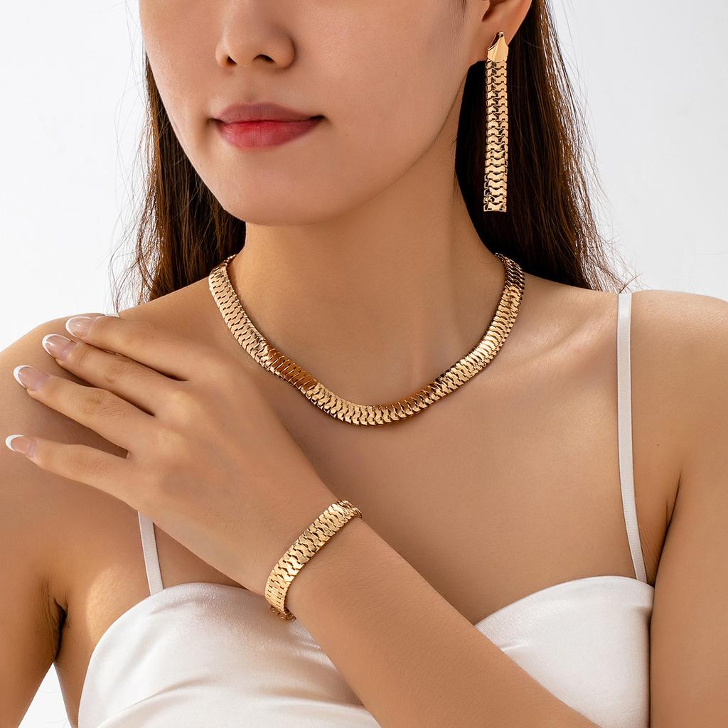 Fashion temperament Elegant personality Versatile gold European and American style necklace Bracelet Earrings suit Women's