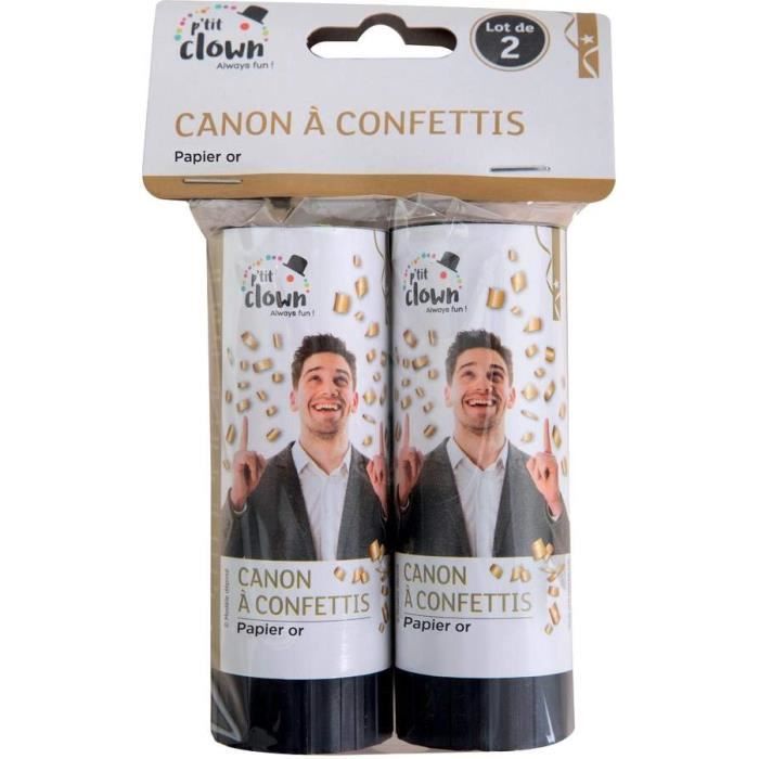 P'TIT Clown re93000 - Lot de 2 canons à confettis 11 cm, papier Or