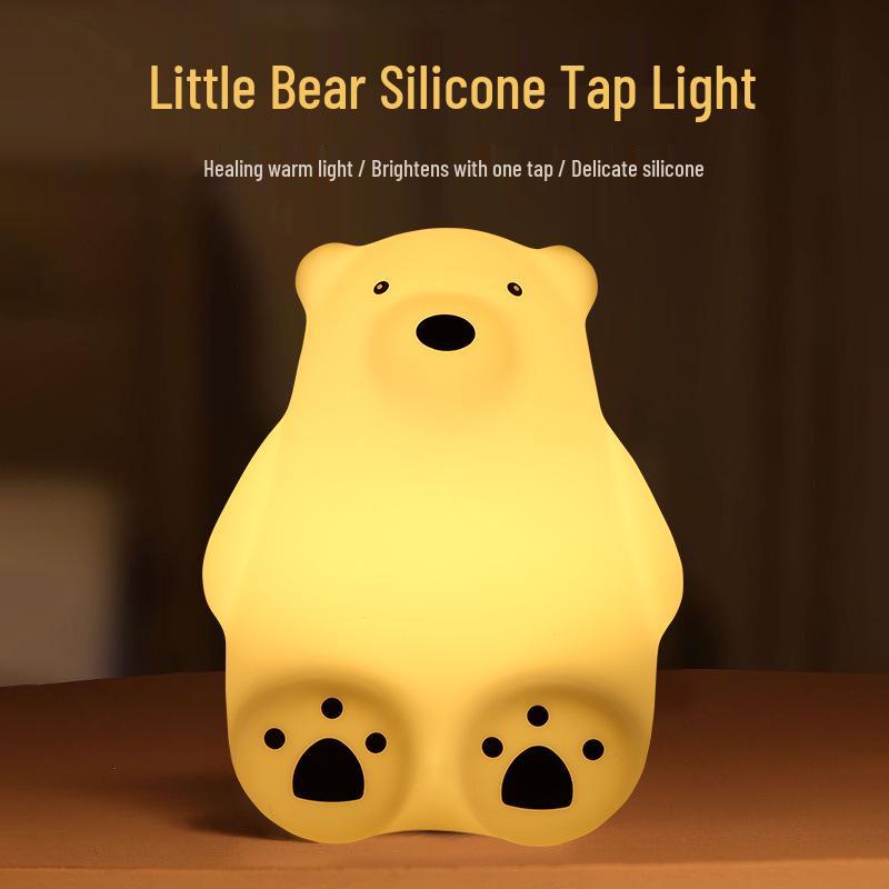 Little White Bear Silicone Touch Night Light for Kids - Bedside Sleep Companion and Custom Gift