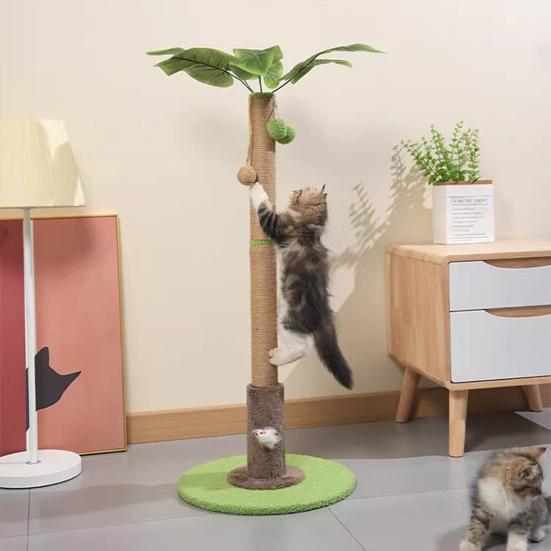 Realistyczny design palmy kokosowej: Zabawka, wzorowana na tropikalnych drzewach kokosowych, łączy estetykę z funkcjonalnością.. Jego naturalny wygląd płynnie wpasowuje się w wystrój domu, stanowiąc atrakcyjny dodatek do każdego pomieszczenia, a jednocześnie służąc jako angażująca konstrukcja do zabawy dla kotów.