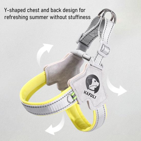 Dzięki Y-kształtnemu designowi na klatce piersiowej i plecach, uprząż równomiernie rozkłada ciężar na klatce piersiowej i plecach, eliminując nacisk na szyję zwierzęcia spowodowany przez tradycyjne obroże.. Pozwala to na większą swobodę ruchów podczas biegania lub chodzenia i pomaga chronić zdrowie układu oddechowego zwierząt.