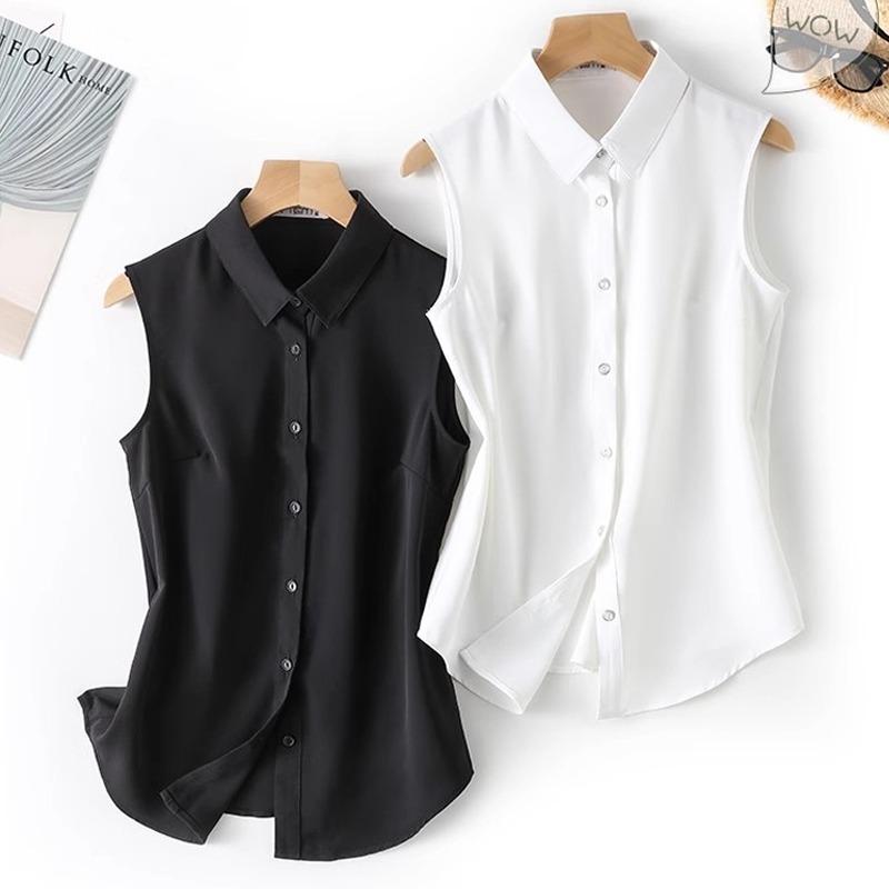 Sleeveless Summer Women Shirt Fashion Casual Loose Top Base Vest Elegant Lapel Office Streetwear Slim Fit Solid Color Blouse Basic Clothing