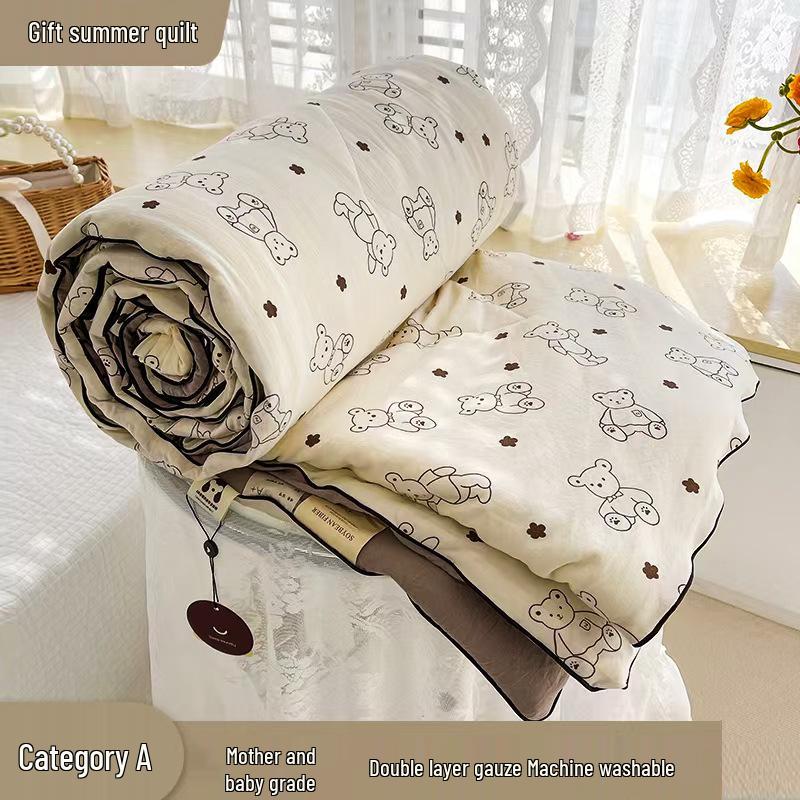 Class A Soy Fiber Double-Layer Summer Quilt with Cartoon Print - Air Conditioning Comfort Quilt, Thin & Lightweight