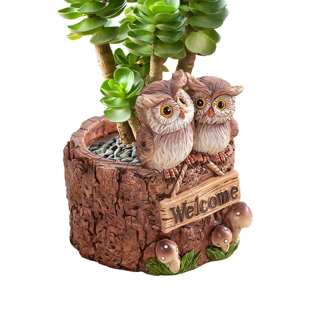 Creative Owl Resin Flowerpot Small Tree Stump Shaped S ucculent Plant Container With Welcome Sign Mushroom Decoration