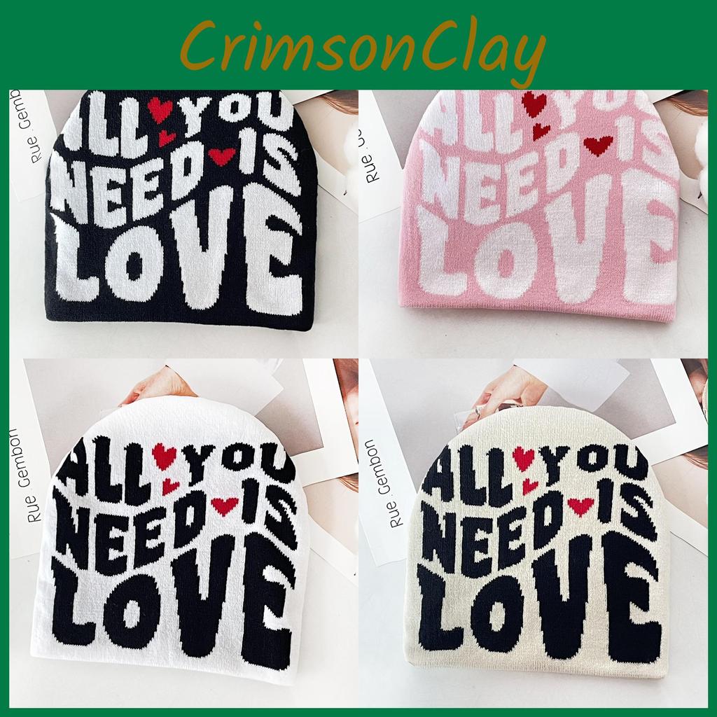 Simple Color Blocked Letter Heart Pattern Women Casual Warm Knitted Hat For Autumn Casual Wear