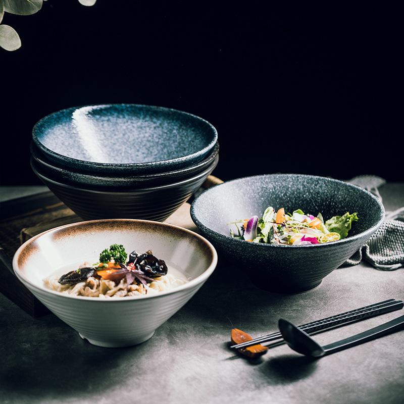 Japanese Ceramic Dòulì Ramen Bowl – Retro Coarse Pottery, High-End, Large Open-Mouth Trumpet Design, Ideal for Home Tableware