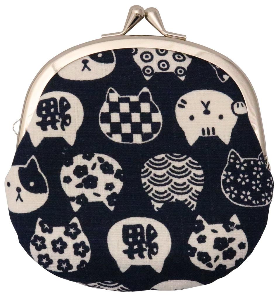 Portfel z zapięciem Kyoyu z Kotem cale x Granatowy Japoński Wzór, Nyankomon, 3.3 (12 11,5 cm),