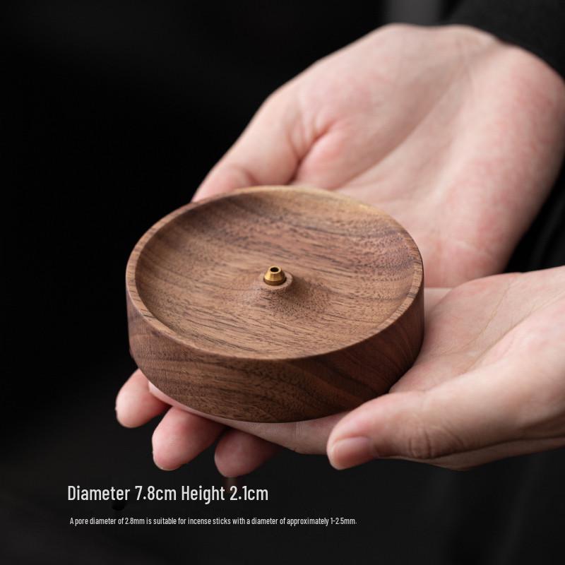 Zen Round North American Walnut Incense Holder with Agarwood Incense Sticks - Chinese Style Solid Wood Household Burner