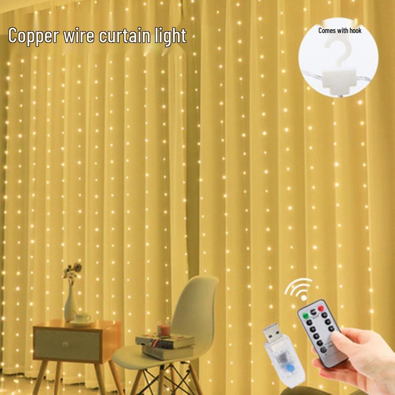 USB Remote-Control LED Curtain Lights with 8 Functions - Colorful Copper Wire String for Christmas & Festival Decoration