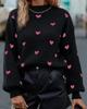Women's European & American Autumn/Winter Heart Knit Pullover - Long Sleeve, Round Neck, Casual Style