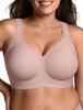 Funkcjonować: Zbieranie, Bez śladu, Oddychający, Wsparcie górnej części, Bezszwowy, Przyjazny dla skóry, Ochrona przed prześwitywaniem, Komfort, Odprowadzający wilgoć, Zbieranie boczne, Dodatkowe wsparcie piersi, Zapobiega zwijaniu, Sprawia, że duże piersi wyglądają na mniejsze