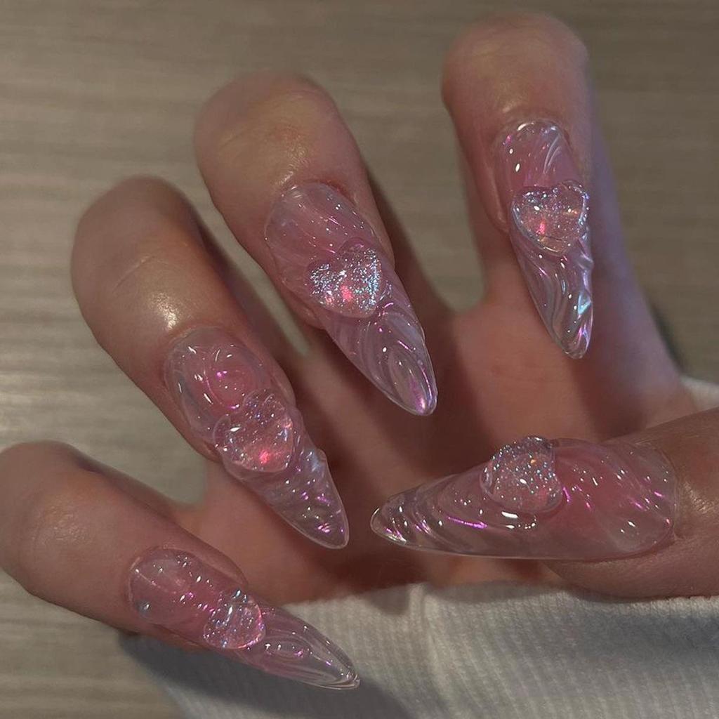 3D Stereo Wave Heart Aurora Short Pointed Wearable False Nails - Nail Art Tips