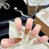 L81 French Brown Rhinestone Handmade Wearable Nails