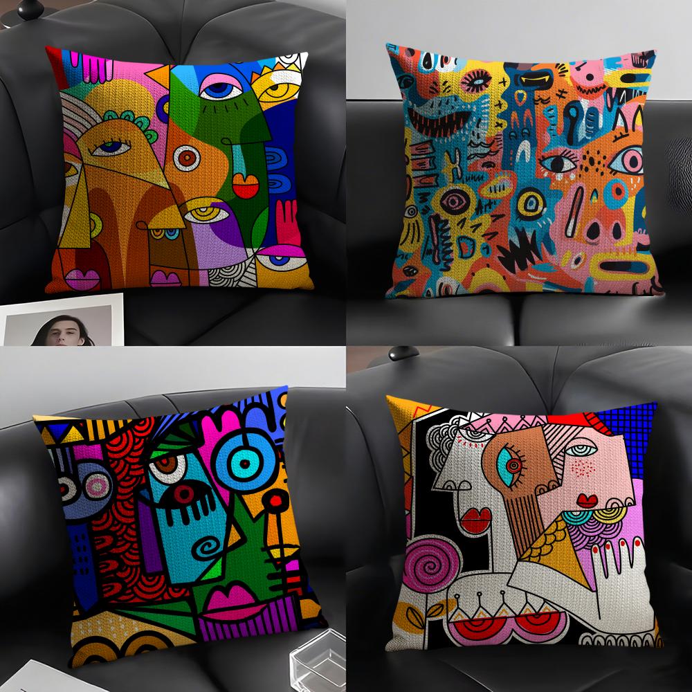 Colorful Abstract Faces Pillow Case Pattern Printed Pillowcase For Living Room Sofa Cushion Cover Bedroom Decor