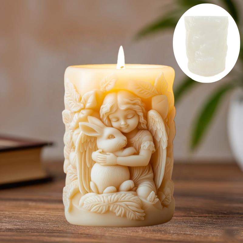 Anioł obejmujący królika reliefowy cylinder świeca silikonowa forma skrzydła dziewczyna anioł żywica forma anioły dziewczyna królik wielkanocny gipsowe formy