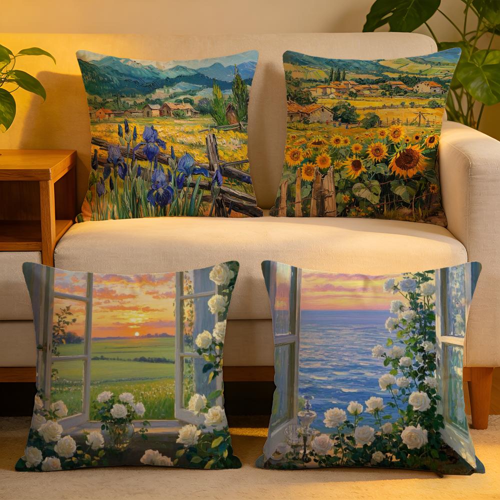 Cushion Cover Linen SkinFriendly Soft Decorative Case for Sofa Home Decor Landscape painting style Pillow cover