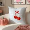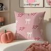 Sweet Girly Floral Art Pink Bow Cherry Pattern Cushion Cover Pillowcase Short Plush Invisible zipper Room Sofa Cushion Cover