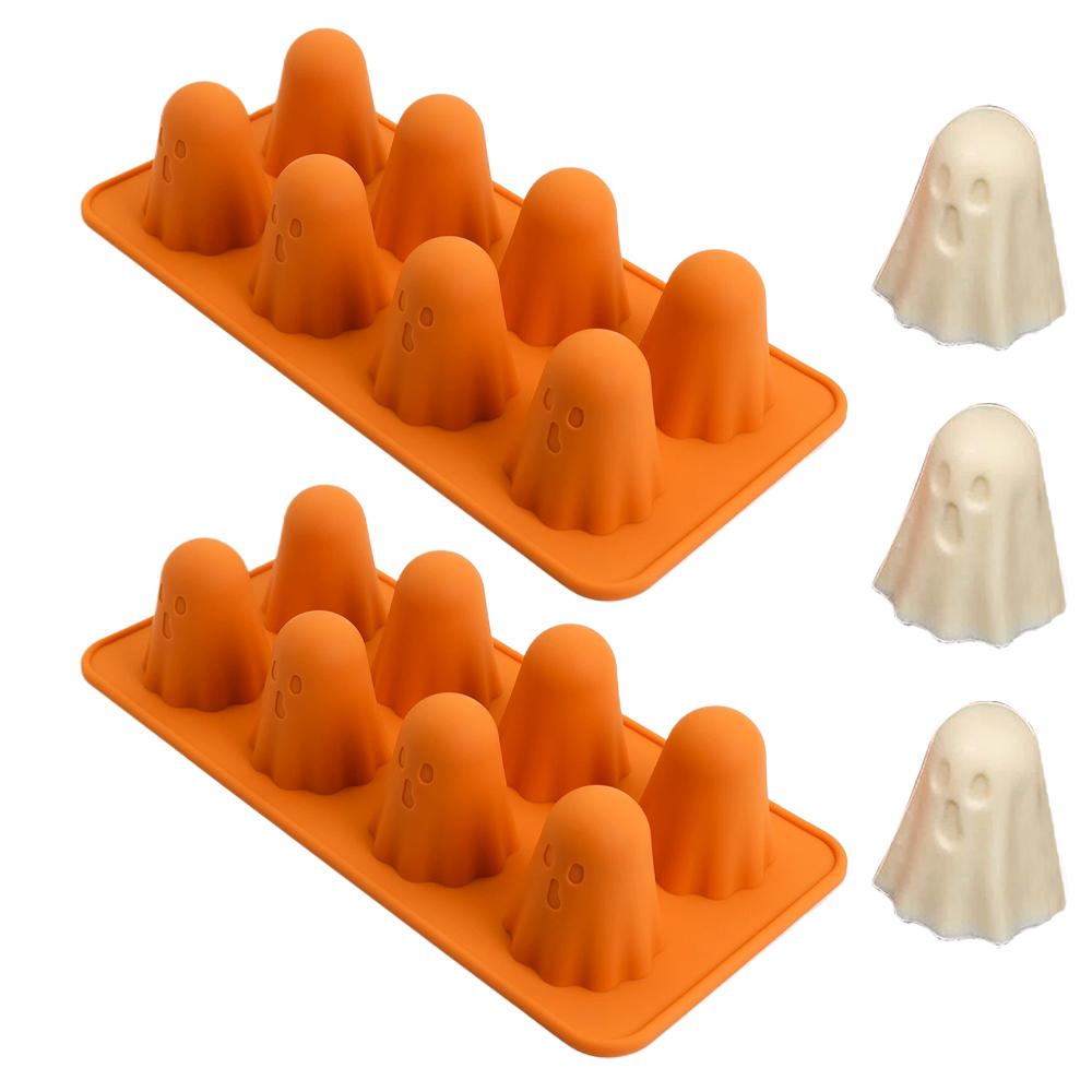 Reusable 3D Halloween Ghost Chocolate Mold Kawaii Ghost Silicone Mold 8/9-Cavity Ice Cube Candy Jelly Mould Cake Tool