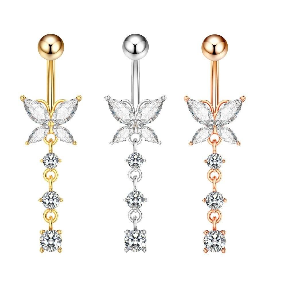 Butterfly Zircon Navel Ring Stainless Steel Belly Button Ring Body Piercing Jewelry Gift