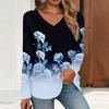 Women's T Shirt Retro Print Long Sleeve Daily Weekend Daily Basic V Neck Regular Fall Winter Tops