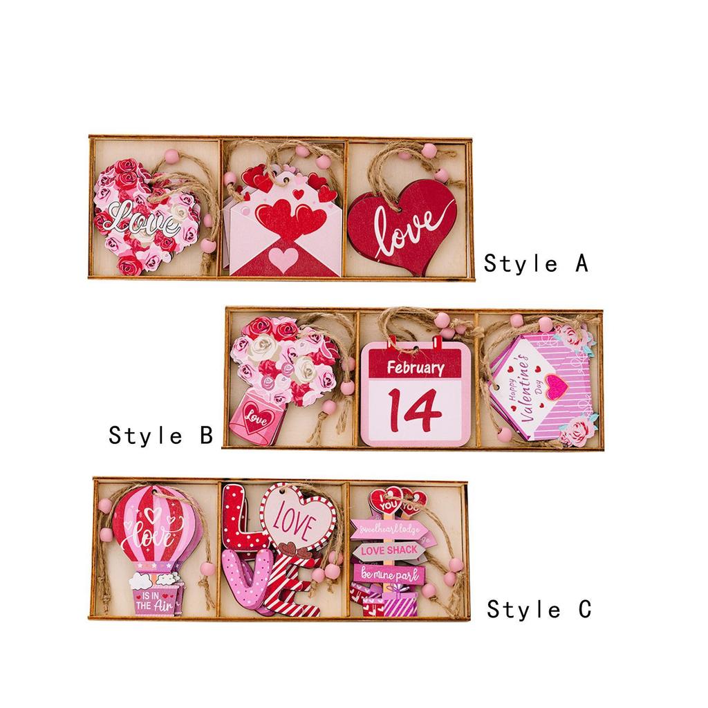 9Pcs Valentines Wooden Hanging Ornaments for DIY Crafts Project Wall Kitchen