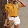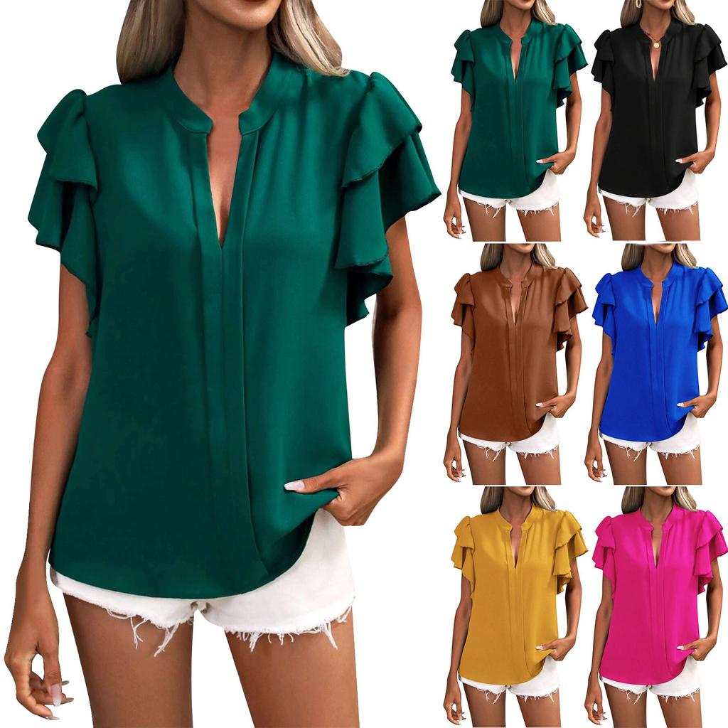 Women's V-Neck Casual Double-Layer Ruffle Sleeve Color Shirt Top