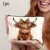 1 szt. Podróżna kosmetyczka z nadrukiem krowy szkockiej, uroczy wzór krowy szkockiej, panterka, kokarda, lekka poliestrowa kosmetyczka zapinana na zamek