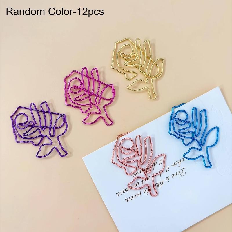 12pcs Rose Shaped Paper Clips Colorful Metal Clips Office School Supplies Organizing Documents Craft Metal Clips Office Supplies