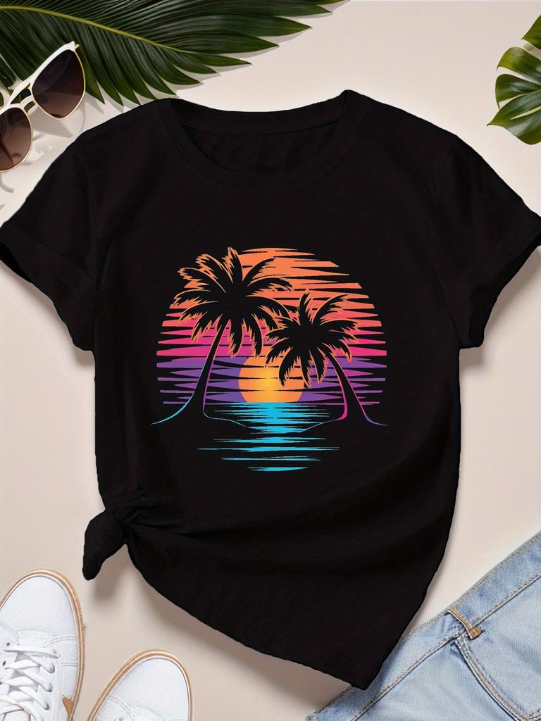 Palm Sunset Womens Sports Short Sleeve TShirt Harajuku Short Sleeve Casual Clothing Street Tops Tees Aesthetic Clothes