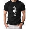 Unisex Adult T Shirt Designer Black White Vintage Seahorse Art Deco Beach Ocean