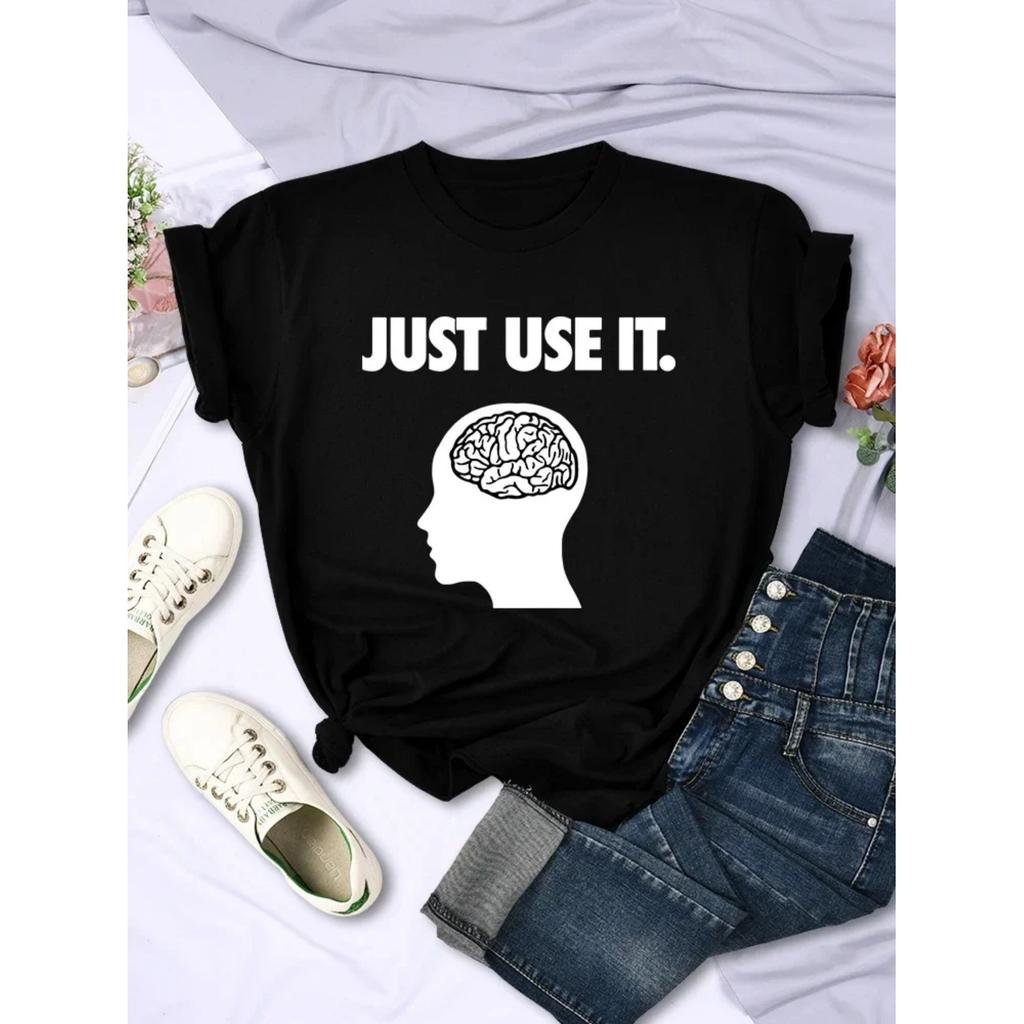 Just Use Your Brain Women's T-shirt Clothing Fun Creative T-shirt Casual Summer Short Sleeve Round Neck Breathable Women's Tops
