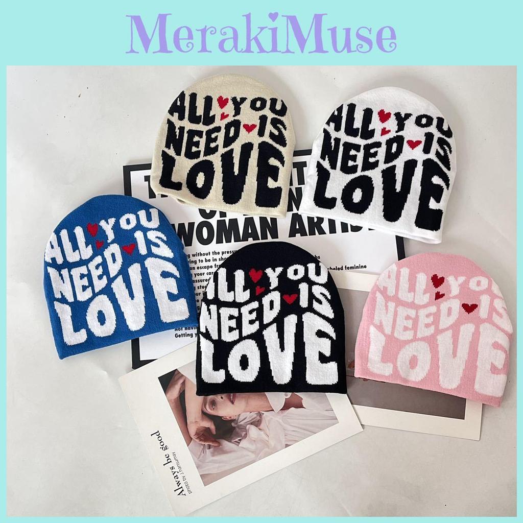 Simple Color Blocked Letter Heart Pattern Women Casual Warm Knitted Hat For Street Style Warmth