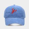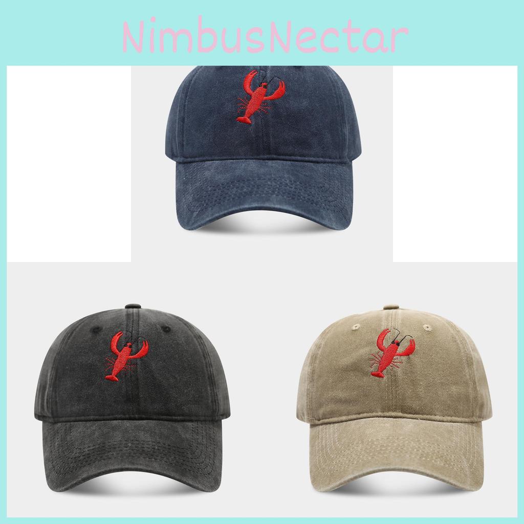 This vintage-style baseball cap features intricate lobster embroidery and a distressed finish, delivering a unique retro look, offering breathable comfort. Its adjustable strap ensures a secure fit for outdoor activities in spring, summer, and fall. Users will appreciate its moisture-wicking and wind-resistant design, ideal for sun protection during casual outings or outdoor sports. Wipe clean with a damp cloth to maintain its stylish appearance.