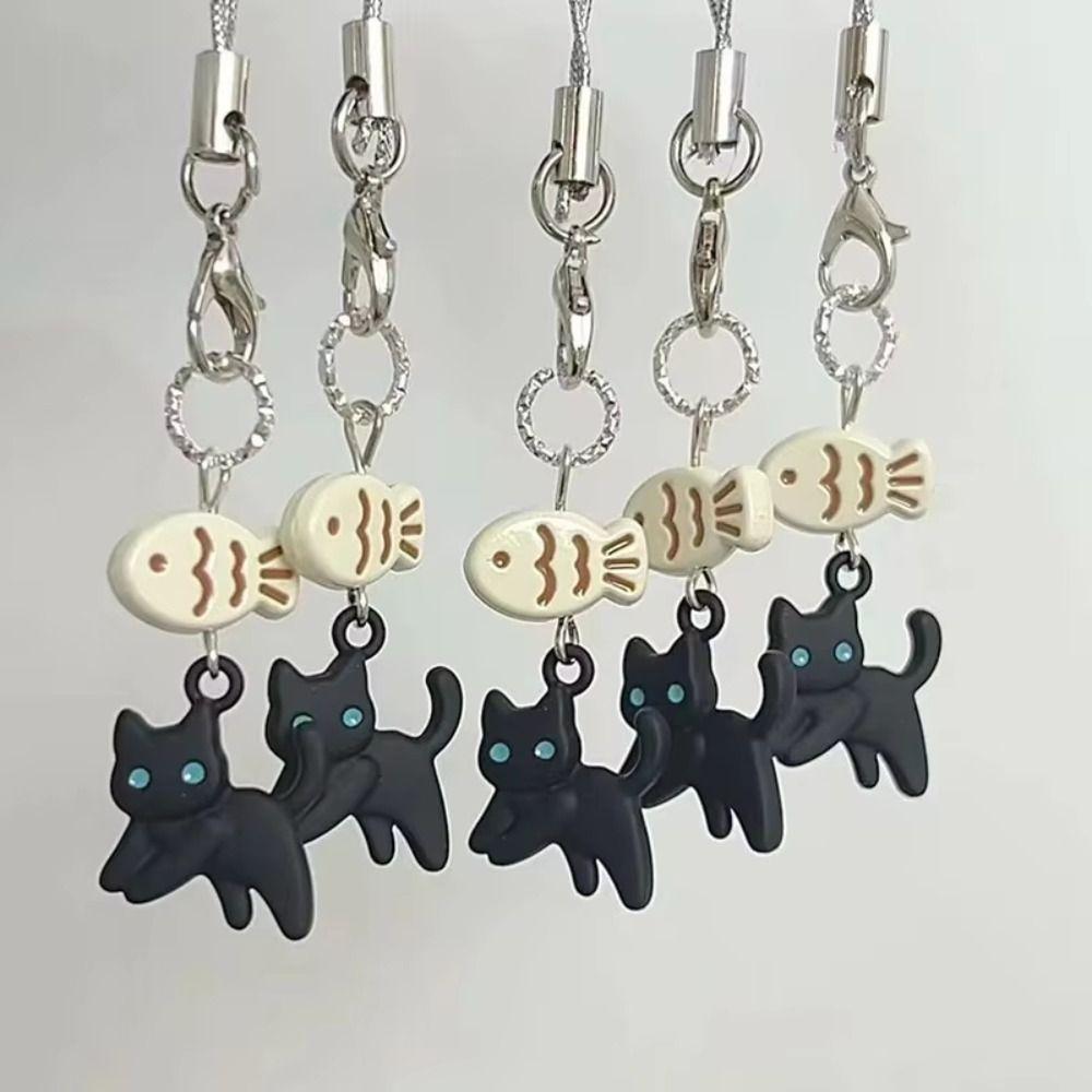 Cellphone Lanyard Y2K Phone Charms Bag Decorative Mobile Phone Chain Black Cat Pendant Backpack